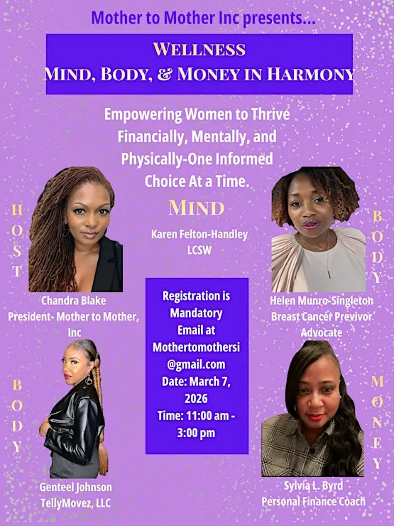 Hosted by Mother To Mother Inc, Wellness: Mind, Body & Money in Harmony is an empowering in-person gathering designed to help women thrive financially, mentally, and physically. Taking place on Saturday, March 7 at the Build A Dream Incubator (4 Minthorne Street, Staten Island, NY 10301), this event creates space for reflection, growth, and practical learning in a supportive community setting.